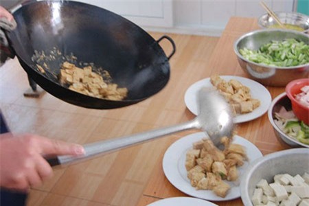 vẫn giữ lại lượng dầu mờ thừa để tiếp tục nấu món mới. |