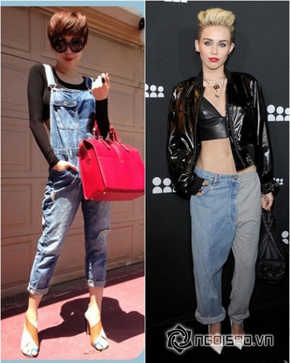 Tuy nhiên, Tóc Tiên cũng bị nhiều người cho là “bắt chước” Miley Cyrus –một nữ ca sĩ nổi tiếng quốc tế. Điều mà mọi người dễ dàng nhận thấy sự giống nhau giữa Tóc Tiên và Miley chính là kiểu tóc pixie cá tính. Ngoài ra, cách mix đồ, phong thái của Tóc Tiên được nhiều người nhận định là “na ná” Miley.