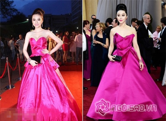 Tuy nhiên, phong cách thời trang thảm đỏ của Angela Phương Trinh dễ dàng khiến nhiều người liên tưởng đến Phạm Băng Băng – một mỹ nhân đình đám của làng giải trí Hoa ngữ. Công chúng nhiều lần bắt gặp “sự trùng hợp” một cách cố tình của Angela Phương Trinh với Phạm Băng Băng.