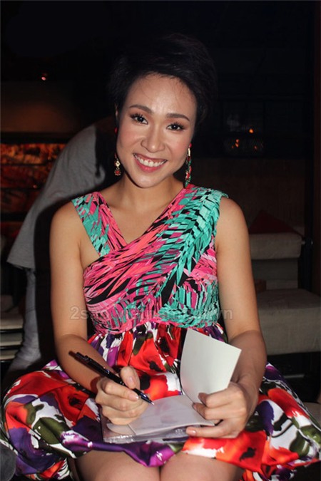 | Nữ ca sĩ Lệ Quyên với nụ cười "không thấy trời đất". |
