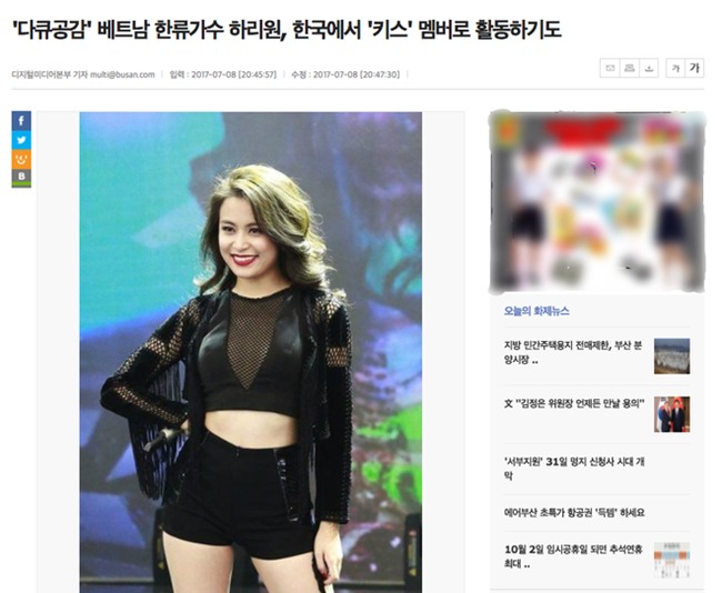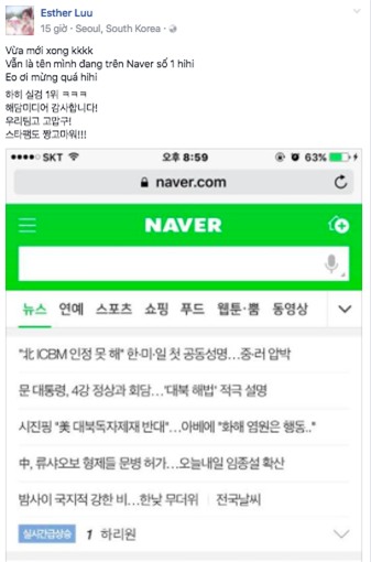 Hari Won không giấu nổi sự hạnh phúc khi tên của mình đứng ở vị trí đầu trên Naver. Tuy nhiên một số cư dân mạng tinh ý nhận ra, bài viết được đăng tải trên News 20 Busan lại có sự nhầm lẫn vô cùng đáng tiếc. Với tiêu đề “Ngôi sao hallyu Việt Nam Hari Won từng là thành viên nhóm Kiss hoạt động tại Hàn Quốc”, nội dung toàn bộ bài viết nói về giọng ca Anh cứ đi đi nhưng ảnh minh hoạ lại là… Hoàng Thuỳ Linh.