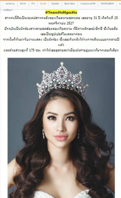 Khi Phạm Hương đang dự thi Hoa hậu Hoàn vũ thế giới 2015 thì trang web www.mthai.com là một trong những website thông tin giải trí khá lớn tại Thái Lan đã có bài viết khen ngợi về trang phục truyền thống của Việt Nam.