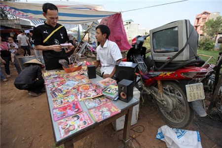 Quầy bán băng đĩa nhạc tại chợ Nủa (Bình Phú, Thạch Thất, Hà Nội). |