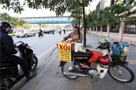 Từ vài năm nay, sáng nào người phụ nữ sống ở ngoại ô này cũng dựng chiếc xe máy này gần cổng đại học Luật Hà Nội để bán xôi. |
