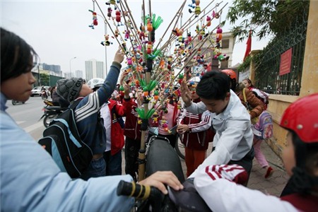 Cứ mỗi buổi tan học chiếc xe máy với đủ thứ đồ chơi trẻ em lại xuất hiện trước cổng trường tiểu học Nam Trung Yên, Hà Nội. |