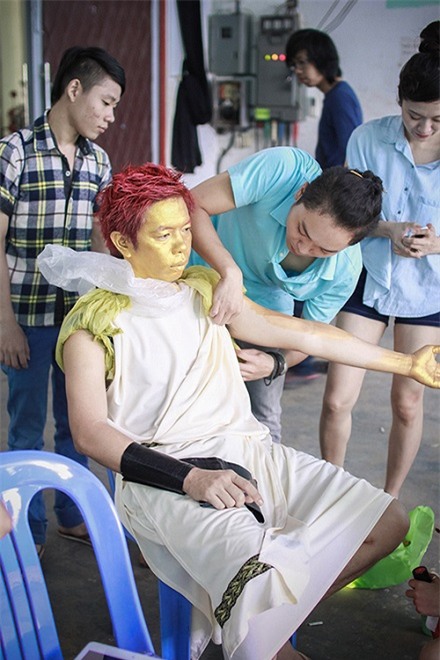 Vai diễn này buộc Thái Hòa phải nhuộm tóc đỏ, lông mày đỏ và phủ nhũ vàng khắp cơ thể. Mặc dù được các chuyên gia trang điểm sử dụng những loại mỹ phẩm tốt nhất để tránh làm hại da nhưng da của Thái Hòa cũng khó tránh khỏi chuyện bị ... xấu đi.