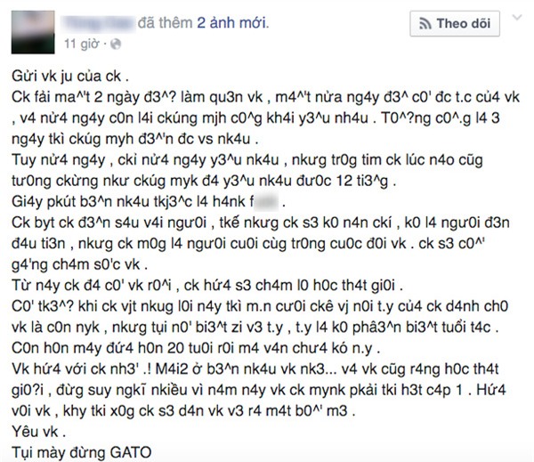 Gây bão cả cái Facebook hôm qua là một bức thư tình đầy tâm huyết được viết chi chít bằng ngôn ngữ teen - cái kiểu ngôn ngữ đã thịnh hành từ cách đây không biết đã được chục năm hay chưa của cặp đôi yêu nhau đã được tận... một ngày. Thực cũng ngưỡng mộ bạn "ck" (chồng) đã bỏ ra không biết bao nhiều công sức để viết bức thư này, rồi cũng thương luôn bạn "vk" (vợ) khi đọc được lại phải căng mắt ra dịch từng chữ. Đi kèm bức thư tình không phải ai cũng hiểu này là bức ảnh hai cô cậu học sinh mặt còn non choẹt đang hôn nhau làm dân tình phát hoảng! Ôi, các bạn trẻ bây giờ...