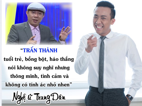 Để chứng minh cho lời nhận xét, nghệ sĩ Trung Dân đưa ví dụ của chính bản thân khi đi chung với Trấn Thành: "Chúng tôi từng rơi vào hoàn cảnh khó vô cùng, nhưng cậu ấy đã không làm gì với người hại mình".