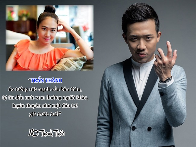 Từ những khúc mắc, người dẫn show Vui cùng hugo nhận xét đàn em gay gắt: "Trấn Thành là người tự tin đến mức xem thường người khác, ảo tưởng về khả năng của bản thân, huyên thuyên trong micro như một đứa trẻ già trước tuổi. Vì thế, dù là người có tài nhưng lại không biết cách tận dụng để khiến người khác nể phục mình".
