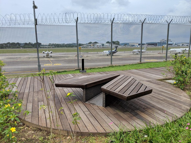 Ghế ngồi ngắm cảnh ở sát phi trường có thiết kế như một chiếc máy bay giấy.