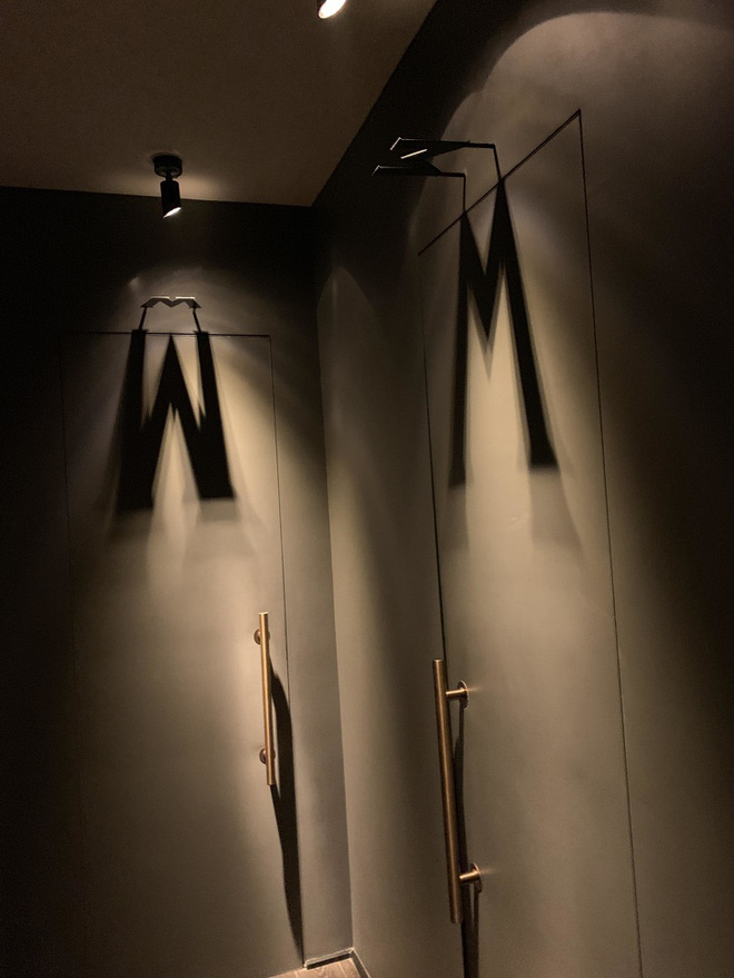 Hai chữ M cũng đủ để phân biệt nhà vệ sinh nam, nữ dựa vào ánh đèn.