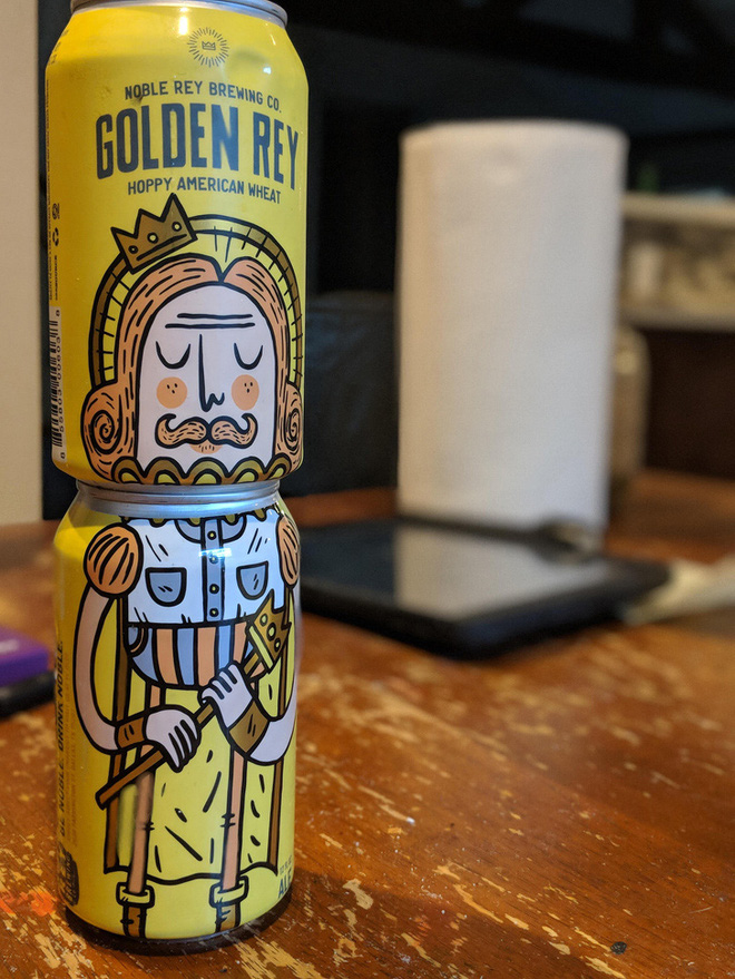Hai lon bia khi được xếp chồng lên nhau sẽ hiển thị hình một vị vua hoàn chỉnh.