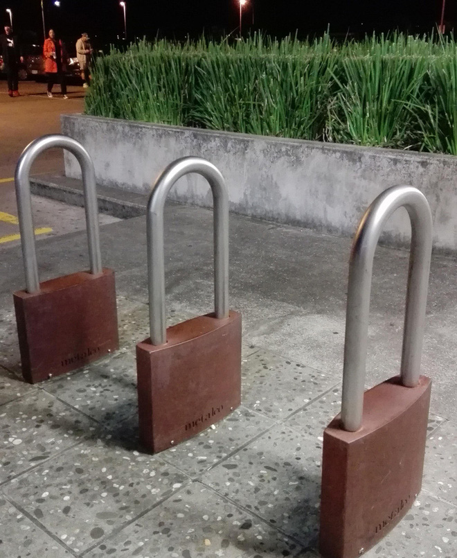 Bãi đỗ xe đạp có hình chìa khóa, nhắc nhở mọi người nhớ khóa xe của mình.