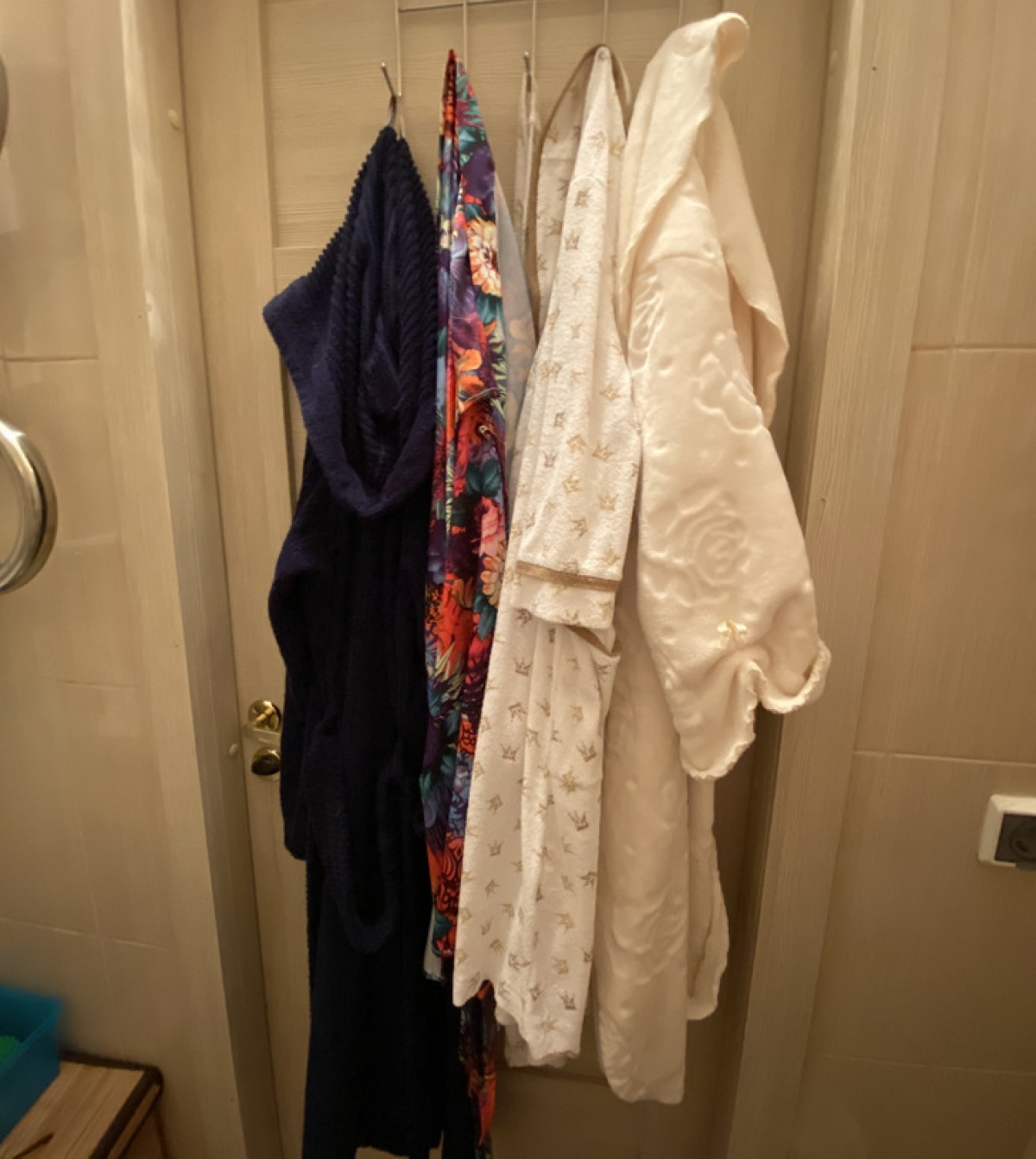 Phòng tắm là nơi có độ ẩm cao, nên nếu treo áo choàng tắm trên cửa rất dễ bị ẩm và là môi trường lý tưởng cho vi khuẩn sinh sôi, tạo ra mùi khó chịu. Bạn nên để áo choàng tắm, cũng như khăn sạch ở một nơi khác trong nhà.
