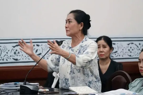 Bà Võ Thị Hồng Nhung - em gái cố NSƯT Vũ Linh, tại phiên toà sơ thẩm