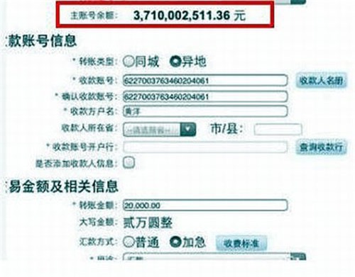 Bức ảnh chụp màn hình một tài khoản ngân hàng có 3,7 tỷ nhân dân tệ, tương đương 597.000 triệu USD. |