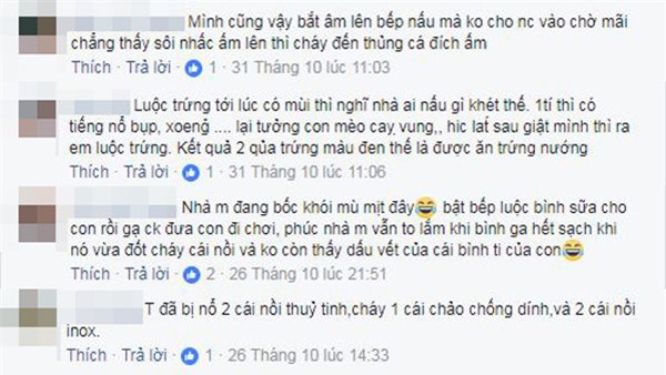 Chị Phương Hòa (Thái Bình) chia sẻ: "Có mẹ nào đẻ xong mà hay quên như em không? Lấy mật ong xong đi ra không đậy nắp làm kiến bò hết vào không dùng được nữa. Đun thịt thì quên không để ý cháy đen thui nồi thịt luộc. Mẹ kêu em đi mua đồ về lễ, tiện em đi mua luôn mấy hộp mì ăn liền. Mà đến quán lượn một vòng chọn mỗi mấy hộp mì đem về. Về đến nhà mẹ hỏi đồ lễ đâu mới nhớ ra thôi quên mất rồi".