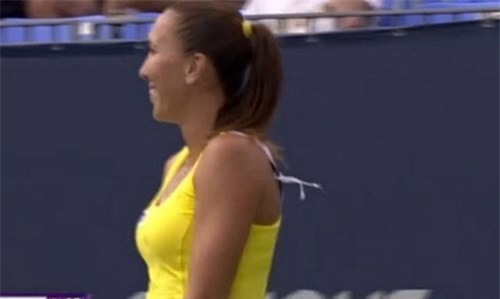 Ngôi sao quần vợt Jelena Jankovic cũng bị đứt dây áo trong trong trận đấu tại Rogers Cup, tháng 8/2014.