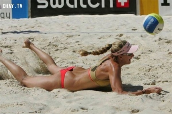 Trong một pha nỗ lực cứu bóng, “nữ hoàng” bóng chuyền bãi biển Kerri Walsh đã bị tuột quần khiến phần dưới của cô bị lộ ra.