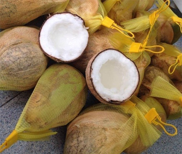 nước dừa sền sệt hòa lẫn với nhau. Để thưởng thức loại dừa này, người ta