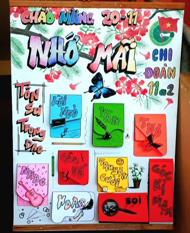 Hẳn với bất cứ ai đã qua thời học sinh thì những kỷ niệm cùng nhau hào hứng làm báo tường vào ngày 20/11 đều để lại ấn tượng đáng nhớ. Làm báo tường không chỉ là hoạt động hưởng ứng phong trào, tạo điều kiện cho thầy và trò gắn kết mà còn là dịp để nhiều bạn học sinh trong lớp trổ tài hội họa và khả năng sáng tạo không giới hạn của mình.