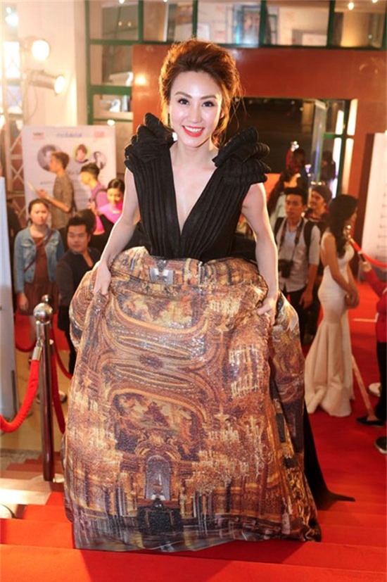 Trong sự kiện mới đây, Thu Thủychọn cho mình chiếc váy xẻ đùi cao. Tuy nhiên, bộ cánh này chẳng hơn gì so với áo chống nắng khiến cô kém sang khi đứng tạo dáng trên thảm đỏ.