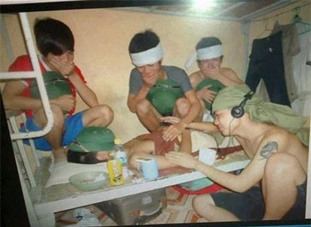 Tranh thủ lúc các bạn cùng phòng đang ngủ say, những người còn lại thích đùa thường bày trò làm đám tang giả. Ví dụ như lấy đũa và cốc làm bát hương, giấy vệ sinh, vải để làm khăn tang,… Xong rồi cả đám đông kéo nhau quỳ lạy, khóc lóc chụp ảnh.