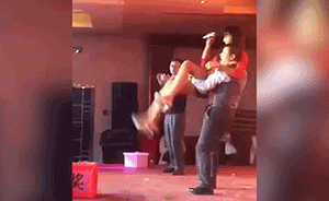 Ở một diễn biến khác, một sếp lớn ở Trung Quốc đã trở thành tâm điểm chỉ trích của cư dân mạng sau khi bất ngờ nhào lên sân khấu, ôm chầm lấy nữ diễn viên đang biểu diễn với ý định sàm sỡ, rồi quăng diễn viên này này thật mạnh xuống sàn khiến cô bất tỉnh một lúc.