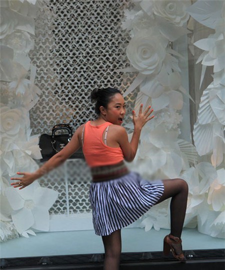 Màn tạo dáng khó hiểu của Lý Nhã Kỳ tại Paris Fashion Week 2012. |