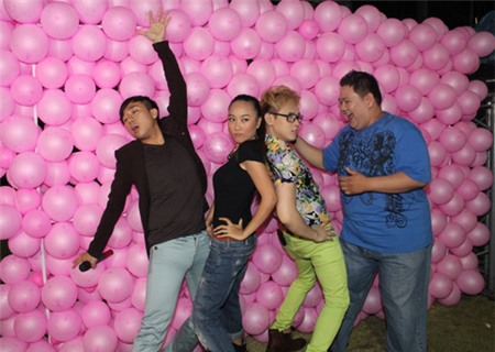 Bộ tứ Trấn Thành - Đoan Trang - Nguyên Vũ và Minh Béo khuấy động trong tiệc sinh nhật của Minh Hằng. |