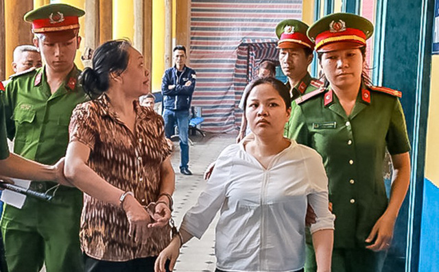 Bị cáo Nguyễn Thị Thanh và Đinh Thị Mai Thuy bị áp giải ra xe sau phiên tòa phúc thẩm