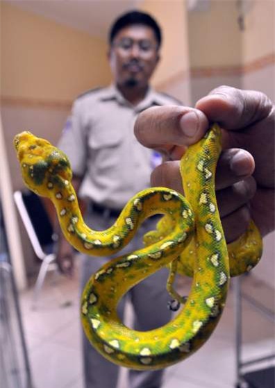 2011, hải quan sân bay Indonesia đã bắt được một con trăn cảnh, đây chỉ