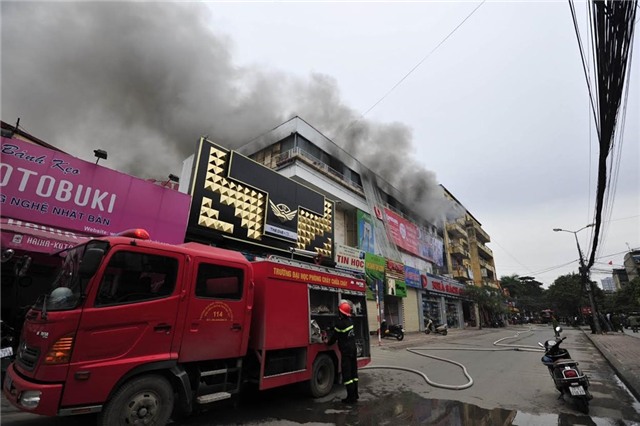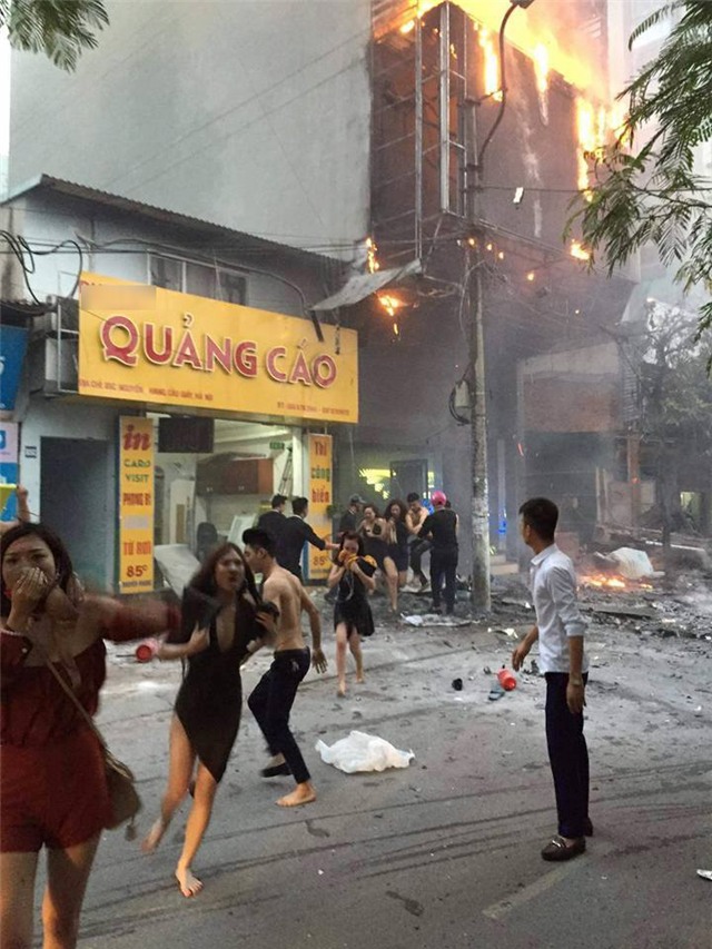| Khoảng 20 nhân viên nam nữ từ các tầng ồ ạt chạy ra ngoài, tạo nên cảnh hỗn loạn. Có hơn 100 cảnh sát làm nhiệm vụ chữa cháy. Theo thông tin từ Phòng cảnh sát PCCC số 3, quán karaoke có diện tích mặt sàn khoảng 80 m2. Tòa nhà có 8 tầng, 1 tum. Thời điểm hỏa hoạn được phát hiện, trong quán có hơn 20 người. May mắn không có thương vong. |