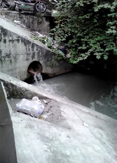 Cô gái nhảy xuống mương tưới nước thải lên người, lấy gạch đập đầu