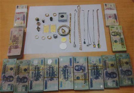 Mở chiếc tủ gỗ, hắn vơ quần áo ném xuống sàn nhà. Hắn mừng rú lên khi tiền và vàng miếng được gia chủ giấu lẫn trong quần áo rơi bụp vào chân mình. Tổng cộng hắn "nhặt" được 18 cây vàng, 20.000 USD, 2.000 euro và 15 triệu đồng.