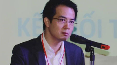 TS Trần Vinh Dự nói chuyện tại Hội thảo Unesco về năng lực người Việt trẻ tháng 8 năm 2015