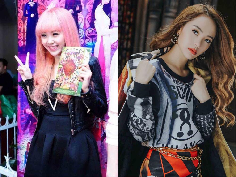 Hòa Minzy cũng đã từng có thời gian gắn bó với mái tóc nhuộm hồng nổi bật trước khi thay đổi sang hình tượng nữ tính hơn như hiện tại nhưng quả thật mái tóc hoàn toàn lạc quẻ với phong cách cũng như diện mạo của cô nàng.