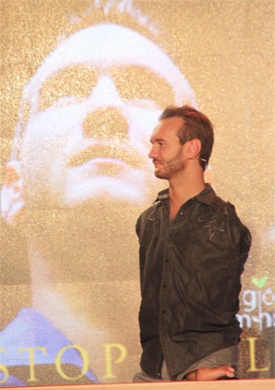 Nick nói: "Tôi năm nay 30 tuổi, và tôi không có tay chân. Không có một lý do gì về mặt y khoa giải thích tôi bị như vậy. Và người ta hỏi tôi ý nghĩa của từ khuyết tật là gì? Rất nhiều người nhìn tôi và nói rằng "ôi giời ơi, anh ta không có cả chân lẫn tay, chắc là cuộc sống chật vật lắm". Thế nhưng tôi có một số sức mạnh để giúp tôi vượt qua điều này, đó chính là gia đình tôi. Bởi vì khiếm khuyết thì luôn luôn là một khiếm khuyết. Mặc dù bạn không phải ngồi trên xe lăn nhưng đôi khi bạn phải trải qua một thời gian khó khăn. Và nhiều khi sự sợ hãi đã níu kéo bạn, khiến bạn không thể nào tiến lên được. Tôi tin rằng bạn sợ hãi, rằng người ta sẽ nghĩ thế nào về mình nhỉ? Các bạn sợ hãi về tương lai, sợ thất bại. Và như vậy, người nào có sự sợ hãi trong mình thì đã có sự khuyết tật rồi".