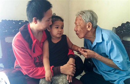 Đến ngày 20/4, anh Tâm lại chở bà ngoại và mang theo các giấy từ liên quan như đơn xác nhận, giấy khai sinh, sổ hộ khẩu… để chứng thực là người thân của bé Ngọc. Khi vừa thấy bé, bà Dương Huyền Thư (72 tuổi, bà ngoại bé Ngọc) dù đã tuổi cao sức yếu những vẫn cố bước thật nhanh đến bên cháu.