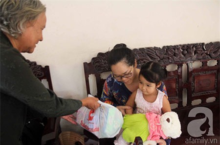 Bà Như gửi quà cho cháu ngoại trước khi ra về. |