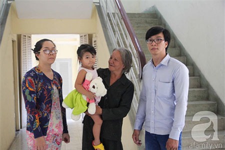 Bé gái sau phút bỡ ngỡ im lặng, được các nhân viên động viên “bà ngoại kìa” cũng ôm lấy bà. Người bà liên tục nắm chặt tay chân, xoa đầu, ôm cháu ngoại vào lòng. Cả phòng, ai nấy đều hạnh phúc trước giây phút trùng phùng.