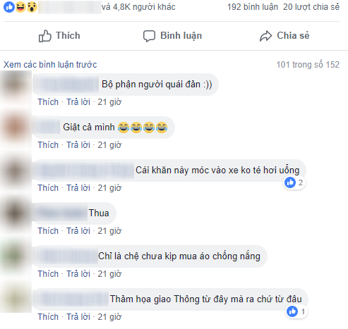 Ngoài ra, bên cạnh đó cũng có không ít người lên tiếng bên vực chị gái trong bức ảnh và chỉ trích sự kém duyên của người đăng tải khi vô duyên vô cớ chụp ảnh người khác, còn đăng đàn cười cợt. Nickname Linh Linh nói: "Hết chuyện. Trời nắng quá không mang áo chống nắng người ta dùng tấm vải trùm cho đỡ nắng cũng soi. Rảnh".