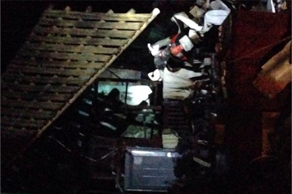 Mọi người chạy ra thì thấy lửa bốc lên dữ dội từ ngôi nhà số 15. 2 ngôi nhà kế bên cũng bị sập đổ hoàn toàn.