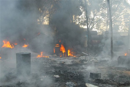 Khói đen nghi ngút bao trùm cả khu vực rộng.