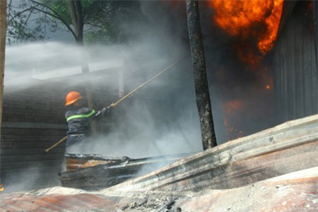 Lực lượng cứu hỏa khống chế ngọn lửa - Ảnh: Xuân An |
