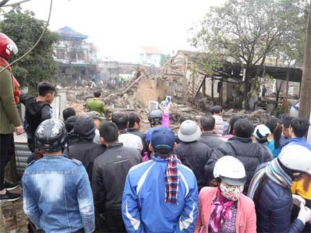 Vụ nổ lớn xảy ra lúc rạng sáng tại Bắc Ninh đã khiến 5 ngôi nhà đổ sập. Nhiều nhà dân cách xa hiện trường đến 200-300 mét cũng bị vỡ nát các cửa kính cường lực do sức công phá của vụ nổ quá lớn.