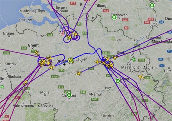 Các máy bay có lộ trình tới sân bay Brussels đều phải chuyển hướng hoặc chờ hạ cánh.