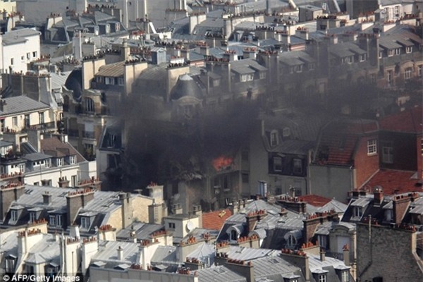 mái nhà. Căn nhà bị hỏa hoạn nằm trên phố Berite thuộc quận 6, Paris.