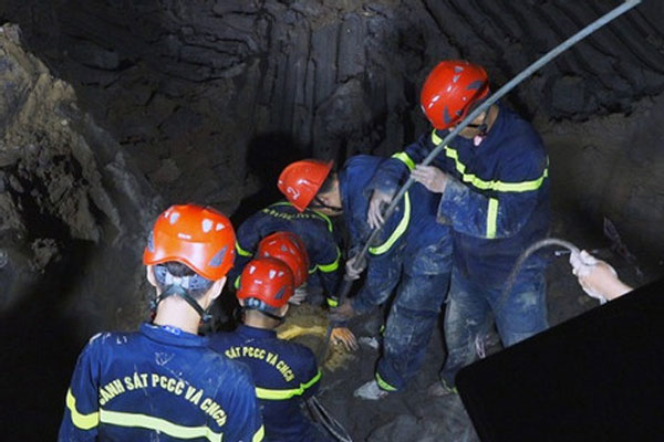Lực lượng cứu hộ đang nỗ lực để tiếp cận nạn nhân. Ảnh: Chế Văn Tiên