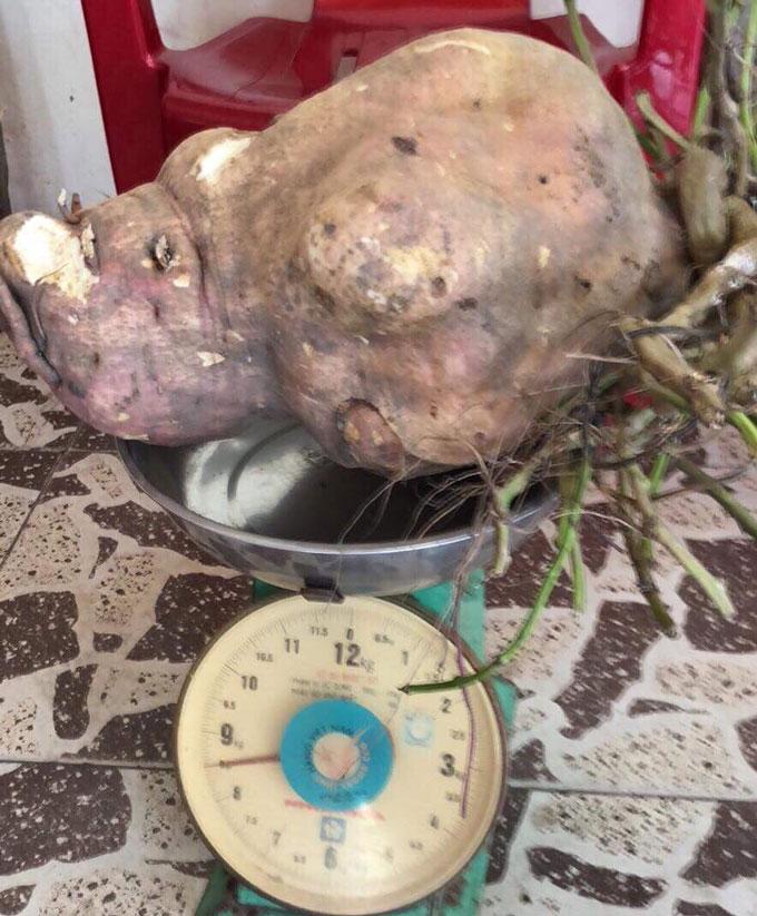 Anh Lo nói thêm: "Khi đem cân, củ khoai nặng tới gần 9kg. Ai thấy củ khoai to cũng thích thú và xúm lại xem”.